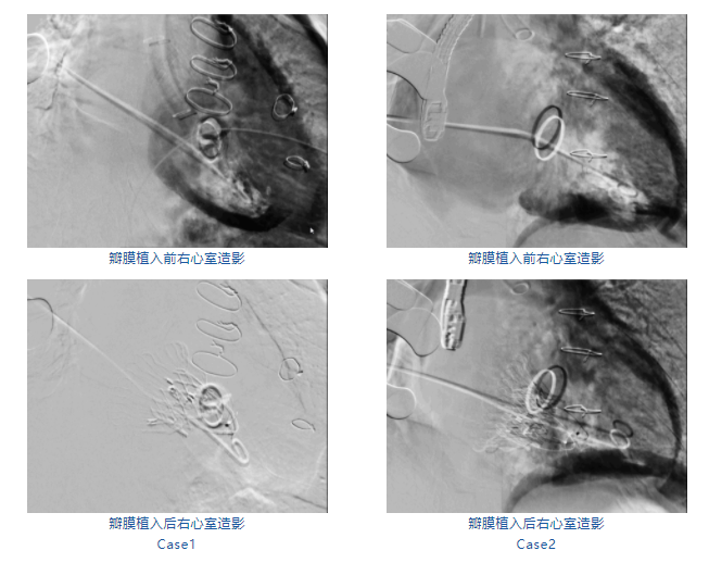 經(jīng)右側(cè)胸部微小切口,郭惠明教授團(tuán)隊(duì)將輸送器經(jīng)右房路徑,通過三尖瓣順利送入右心室,在DSA及超聲指導(dǎo)下精準(zhǔn)地控制輸送系統(tǒng)釋放瓣膜,在超聲和DSA確認(rèn)無瓣周漏及瓣膜系統(tǒng)穩(wěn)定性良好后進(jìn)行室間隔錨定。2例瓣膜置換過程均僅耗時10分鐘,術(shù)后超聲和造影顯示瓣膜位置形態(tài)良好,幾乎無返流。