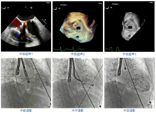 本次接受治療的患者是一名74歲的女性,14年前因風濕性心臟病行二尖瓣生物瓣植入術,合并房顫。近3年來反復因腹脹、納差、下肢水腫入院,藥物治療欠佳。心臟超聲顯示三尖瓣極重度反流(有效反流口面積:0.76cm²,反流容積:79ml),繼發性右房室增大及上、下腔靜脈增寬(右房上下徑*左右徑:52*41mm,右室左右徑:46mm,下腔靜脈:29mm),右室收縮功能正常,肺動脈收縮壓 43mmHg,左心室射血分數73% ?;颊呒韧_胸手術史,術前評估STS 評分為7.02分,CRS 9分,無法接受體外循環下三尖瓣外科手術。面對這一傳統治療無法解決的困境,葛均波院士及其團隊周達新教授、潘文志教授、張源博士、陳莎莎博士及心超室的潘翠珍教授、李偉教授經過討論決定,采用創新的Lux-Valve Plus系統為患者進行經血管三尖瓣置換。
