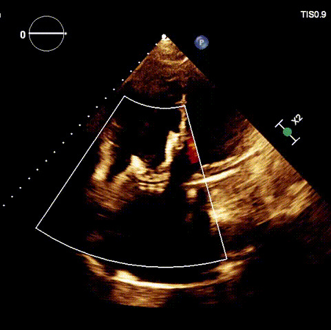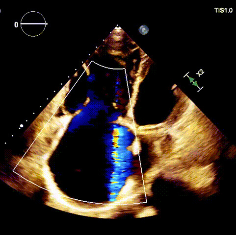 1.二尖瓣位機(jī)械瓣位置及功能未見異常;2.雙房及右室明顯擴(kuò)大(左房收縮容積115ml,右房收縮容積370ml,右室中段左右徑65mm,右室FAC37%),下腔靜脈及冠狀靜脈竇擴(kuò)張(下腔靜脈直徑44mm,冠狀靜脈竇直徑22mm);3.極重度三尖瓣反流(FTR 6+)。