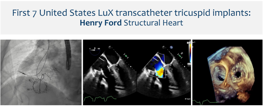 Dee Dee Wang教授隨后分享了Henry Ford Hospital前7例LuX-Valve Plus的植入經(jīng)驗(yàn),并提示術(shù)中確定瓣葉夾持鍵的位置處于三尖瓣瓣環(huán)下方(右心室側(cè)),以及室間隔固定片與室間隔的相對(duì)位置關(guān)系是最關(guān)鍵的兩個(gè)步驟。通過經(jīng)胃底短軸切面,配合右室流入/流出道切面的X-plane就能較容易地獲取相關(guān)影像。由于LuX-Valve Plus對(duì)超聲影像的要求較低,手術(shù)過程簡(jiǎn)單易操作。