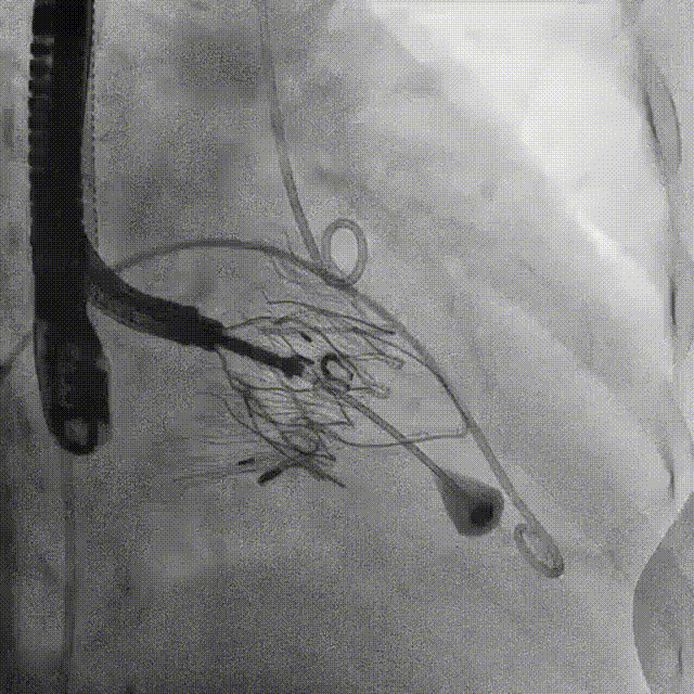 經過術前詳細評估,林逸賢教授團隊認為患者三尖瓣解剖結構不適用于接受三尖瓣修復器械治療(難以夾持瓣葉),最終決定使用健世科技LuX-Valve Plus經頸靜脈三尖瓣置換系統進行三尖瓣原位置換治療。