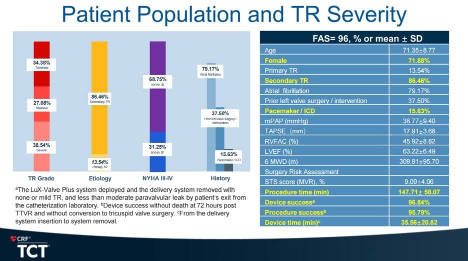 近期,LuX-Valve Plus在2024美國經(jīng)導管心血管治療學術會議(TCT 2024)上,正式全球公布了TRAVLE II 臨床試驗研究1年期隨訪結果,這是繼今年6月紐約瓣膜會(New York Valves 2024)6個月隨訪結果公布后的再一次重磅成果分享,展示了經(jīng)導管三尖瓣介入置換領域的重大研究發(fā)現(xiàn),其結果令人矚目。