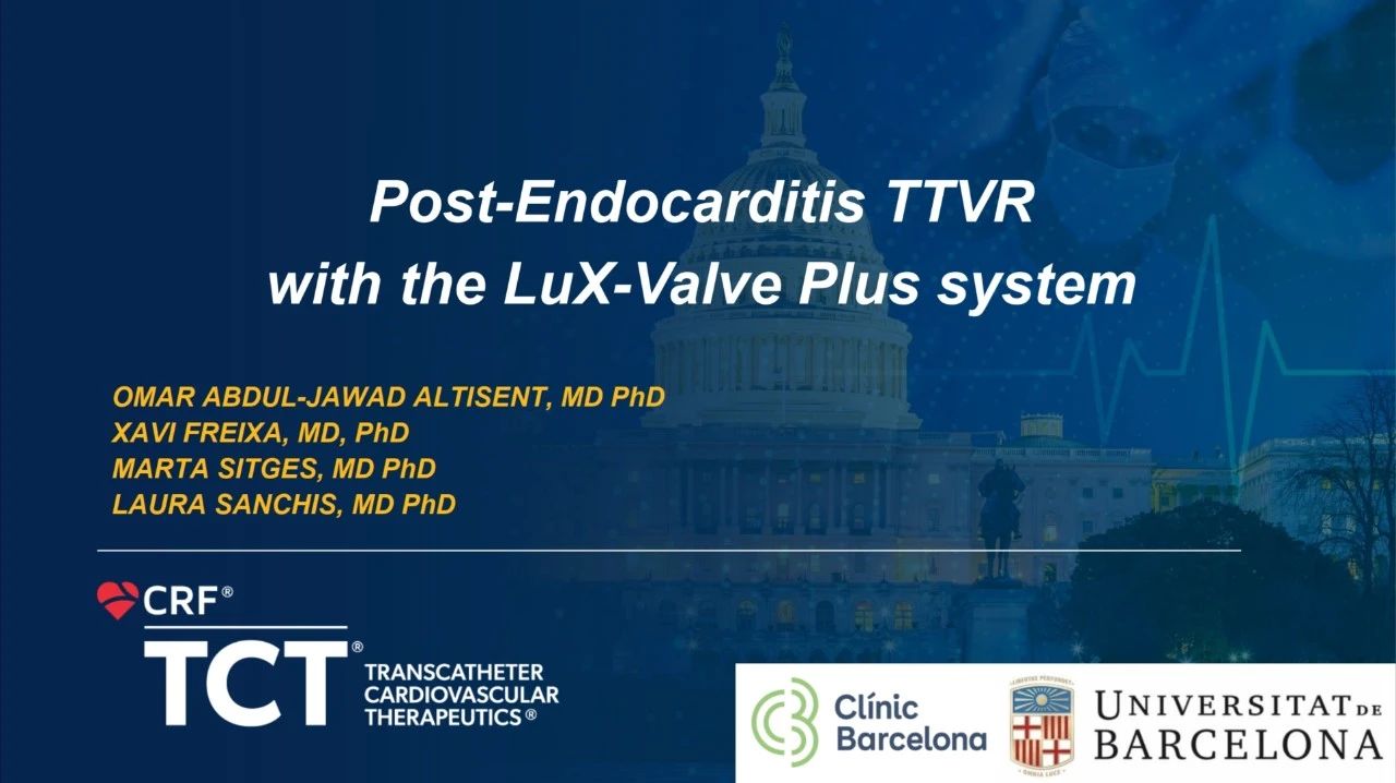 除了公布1年期數(shù)據(jù)以外,來自巴塞羅那臨床中心醫(yī)院(Clinic Barcelona)的Omar Abdul-Jawad Altisent博士還進行了一個病例報告的分享。一名 59 歲男性患者有高血壓、肥胖、A型肝炎,永久性房顫等病史,同時患有三尖瓣心內(nèi)膜炎伴隨三尖瓣返流,右心衰,膿毒性肺栓塞,肺氣腫并需要長期待在 ICU。根據(jù)巴塞羅那臨床中心醫(yī)院治療三尖瓣返流的規(guī)則,因為不能接受的高風險患者首先拒絕了開胸手術這個選項;隨后在評估是選擇修復還是置換路徑的時候,由于患者瓣環(huán)擴張嚴重而且中間有較大開口,因此在CT評估決定后,該中心選擇 LuX-Valve Plus 系統(tǒng)進行三尖瓣置換手術。術后 30天隨訪顯示,所有功能性和生活質量指標都有提升,心功能從原來的 NYHA III 級回到 I/II 級,KCCQ 評分提升37分;6個月期隨訪數(shù)據(jù)顯示心功能改善至 NYHA I 級,KCCQ 評分提升42分。最后,Omar博士總結道,這是第一例成功用于患有心內(nèi)膜炎,嚴重無菌性贅生物以及晚期右心衰竭的患者的經(jīng)皮的三尖瓣置換手術。LuX-Valve Plus 獨特的設計,包括室間隔錨定,40-70mm可選的多樣型號,讓這款產(chǎn)品能應對各種非常挑戰(zhàn)的三尖瓣解剖結構。