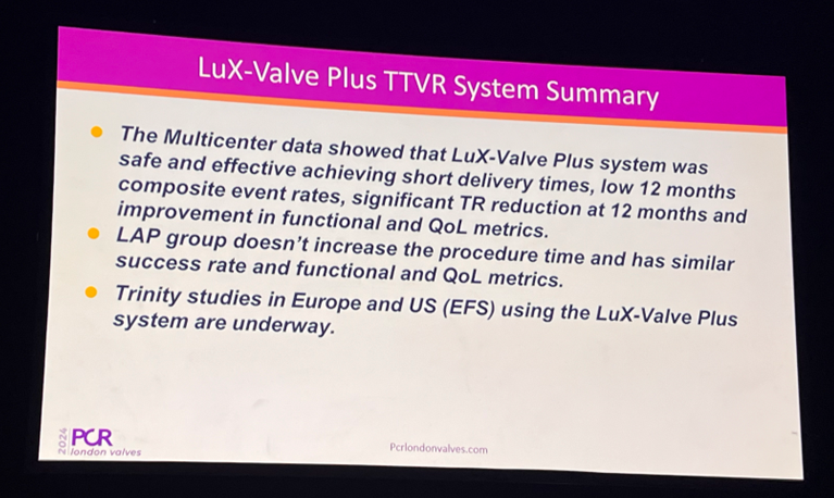 在2024年11月24-26日舉行的 PCR London Valves 2024 大會上,LuX-Valve Plus 再次成為關注焦點。從來自中國的大尺寸瓣環(huán)患者1年臨床數據到來自歐洲、香港和巴西的手術植入經驗全面立體的呈現了其如何為三尖瓣治療提供全新的機遇及未來前景。